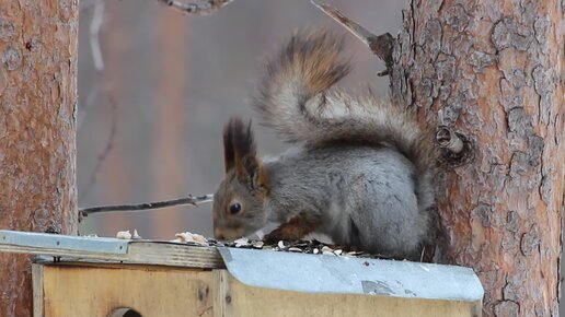 Белка (squirrel/Sciurus vulgaris) – типичный разоритель птичьих кормушек
