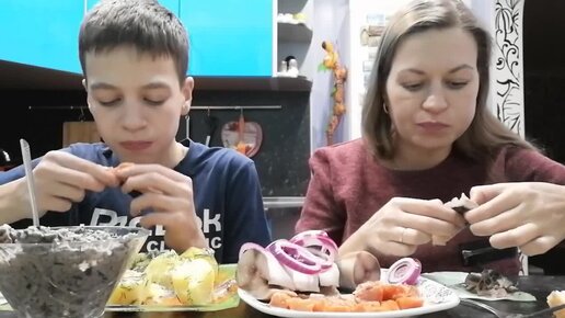 МУКБАНГ ОТВАРНОЙ КАРТОФЕЛЬ и СОЛЁНАЯ СКУМБРИЯ_MUKBANG BOILED POTATOES and SALTED MACKEREL