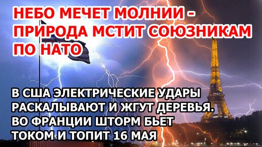 Природа мстит НАТО. В США удары молний раскалывают деревья. Во Франции шторм бьет током и топит