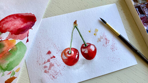 Рисуем вишни акварелью. Поэтапное рисование для начинающих