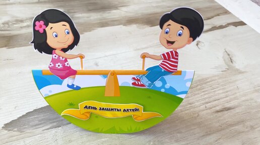 Детская поделка ко Дню Защиты детей из бумаги с шаблонами. Детки на качелях, даже катаются!