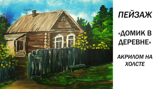 Как нарисовать деревенский пейзаж. Рисуем домик в деревне. Картина акрилом.