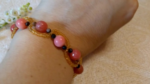Браслет з родоніту та родохрозиту і з бісеру