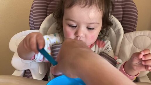 Лия завтракает кашку, почти самостоятельно 16.05.2022