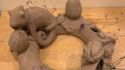 Леплю хамелеона , венок для цветов .