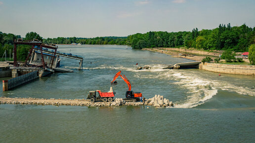 Федоровский гидроузел в Краснодарском крае, после второй аварии. 15.05.2022