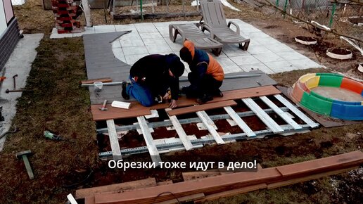 Терраса из ДКП своими руками из подручных средств. Показываю как мы стыкуем обрезки досок