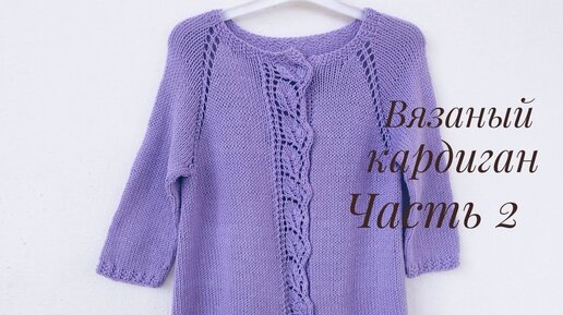 Вязаный кардиган с планкой узором "Листики" //Часть 2 // Вяжем росток