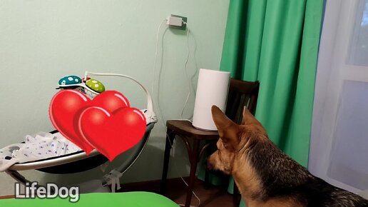 Собака впервые видит новорожденного