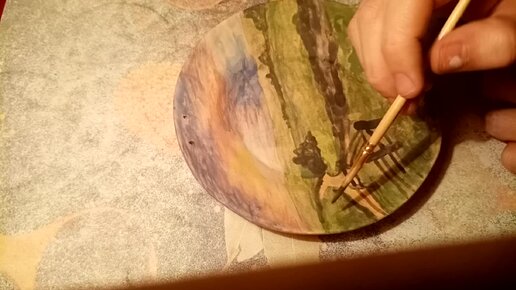 Расписываю декоративную тарелку "Речка"