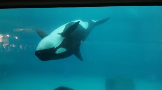 Большие и красивые касатки в большом аквариуме в Москвариуме