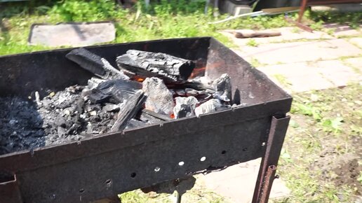 Жарим шашлыки из вырезки на даче. Салат из свежих овощей заправленный подсолнечным маслом