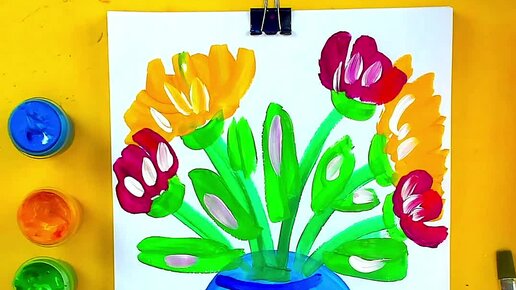 Рисунки для детей - ваза с цветами - рисуем красками гуашь