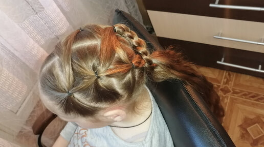 Прическа для девочки с хвостиками и несложным плетением.