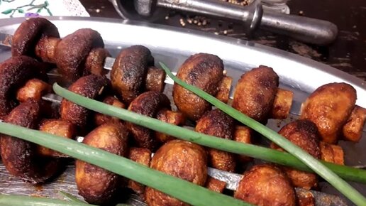 Как быстро приготовить шашлык из шампиньонов на шампурах. Самый простой рецепт грибов на мангале.