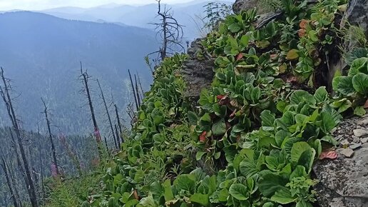 Показываю как растёт бадан на вершине горы у знаменитого Телецкого озера в Горном Алтае
