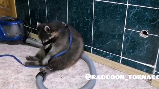 Енот пылесос чинит!