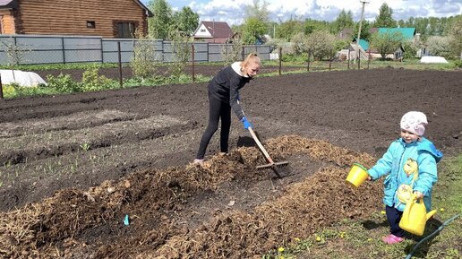 Огурцы в открытый грунт под плёнку / Элиза ухаживает за грядкой / Влог