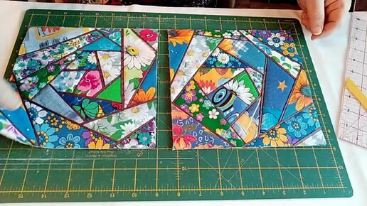 Лоскутный блок крейзи с кантом. Отличный способ утилизировать обрезки ткани.