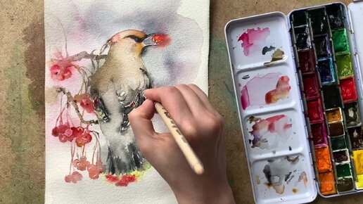 Как Нарисовать Птицу Акварелью. Свиристель