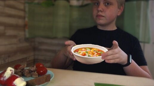 Мукбанг,асмр🌭Супчик и клубничка🍛