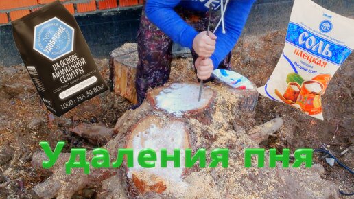 Удаления пня аммиачной селитрой и солью. Результат через 10 месяца.
