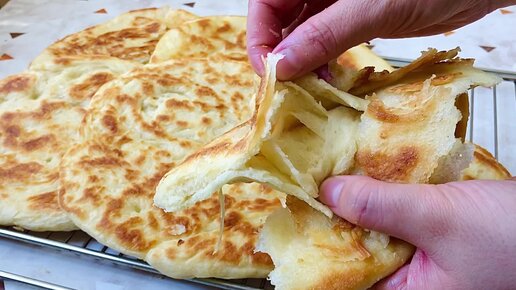 Мука+ Вода, Молоко! Слоёные лепешки на сковороде! Такое приготовление лепёшки вы еще не видели.