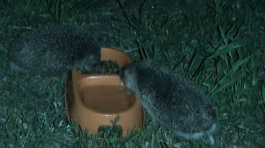 Ёжики во дворе. Ночная съёмка (часть 4)