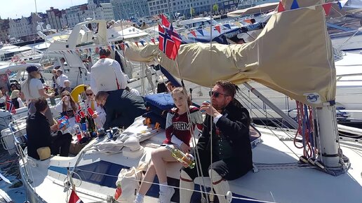 Народные гулянья в Бергене . Вид на бухту в День Конституции 17 Мая