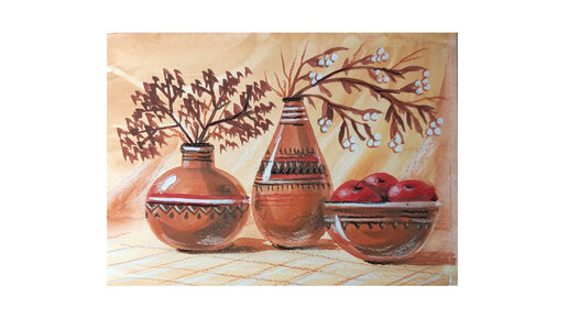 Три керамические вазы. Как просто нарисовать гуашью натюрморт.