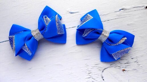 Нарядные Бантики из лент 2,5 см. на заколке. Канзаши