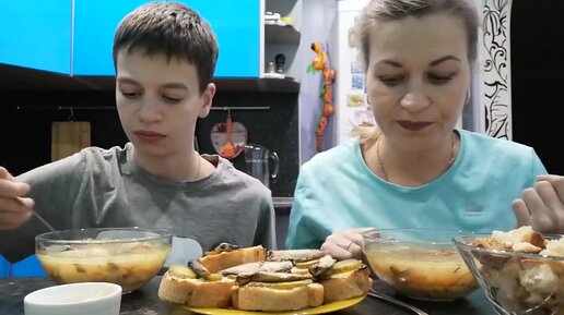 МУКБАНГ ГОРОХОВЫЙ СУП с КОПЧЁНОСТЯМИ_БУТЕРБРОДЫ с РЫБКОЙ_MUKBANG PEA SOUP with smoked MEAT