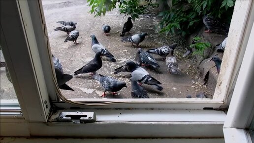 Борьба голубей за место у кормораздатчика – лето 2021.