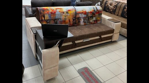 Диван со столиком и ящиками в подлокотниках
