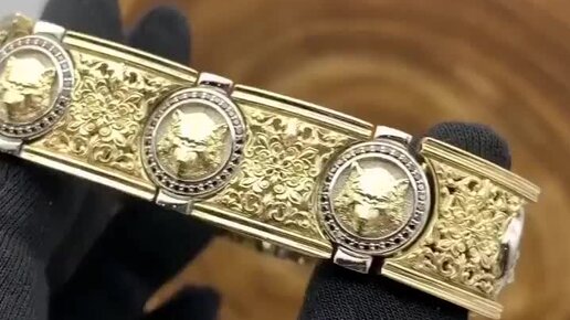 Золотой Браслет Волки с Бриллиантами. 585 проба