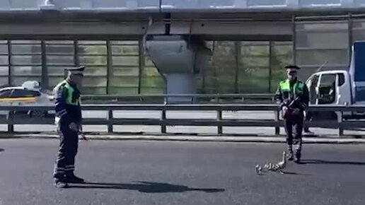 ГАИ помогли уткам перейти дорогу