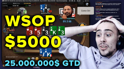 WSOP $5000 ИГРАЕМ С НЕГРЕАНУ 3 800 000$ за первое! Покер МТТ