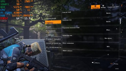 Tom Clancy's The Division 2, тест Ryzen5 2600x и 1660ti