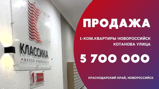 ПРОДАЖА 1-КОМНАТНОЙ КВАРТИРЫ: НОВОРОССИЙСК, КОТАНОВА УЛИЦА, 7 - 5 700 000 РУБ.