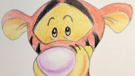 Тигра из мультфильма Винни Пух - рисуем цветными карандашами.
