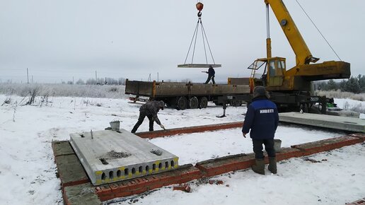 Монтаж сборной плиты перекрытия. Строповка плиты и укладка на подготовленный участок стены