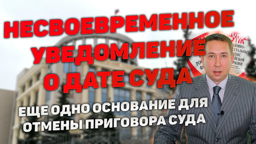 Основание для отмены. Не своевременное уведомление обвиняемого о дате и времени судебного заседания.