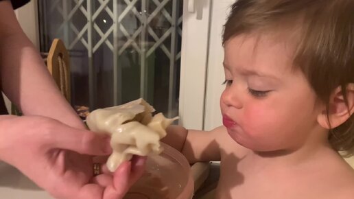 Малыш пробует свою первую хинкалинку☺️☺️