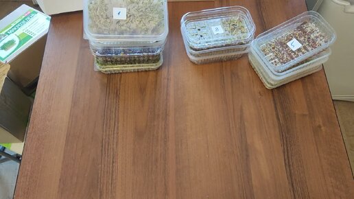 Обзор и распаковка наборов для выращивания микрозелени. Серия 3 (прошло 4 дня после посадки)