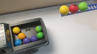 Увлекательная гонка по мраморному дорожке Большие шарики катящиеся вниз, Мусоровоз и пожарная машина