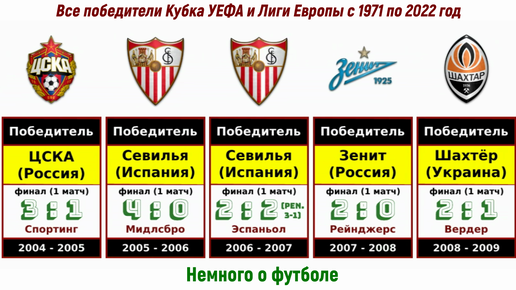 Все победители Кубка УЕФА и Лиги Европы с 1972 по 2022 год