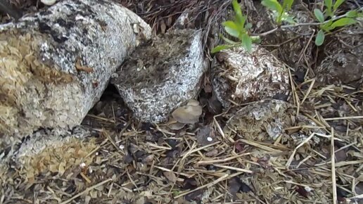 Вешенка на "совсем" отработанных прошлогодних блоках