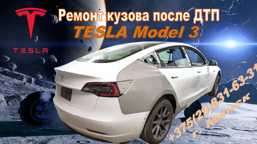 Ремонт кузова после ДТП электромобиля Tesla Model 3 2021 года выпуска на СТО в Минске