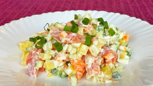 Готовлю вместо приевшегося салата "Оливье": один ингредиент полностью меняет вкус (роскошный вариант знакомого всем салата)