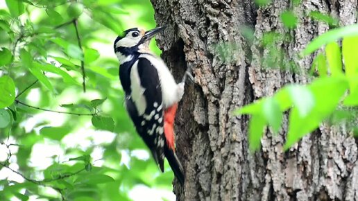 Большие пестрые дятлы у гнезда